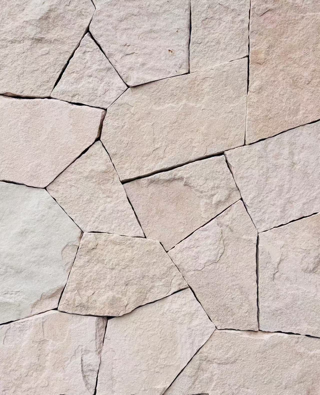 Aspen White Stone Cladding comes in loose, random sized natural stone pieces. With its subtle White Sandstone hues, it’s a great feature for fireplaces, internal walls, and external facades. It also comes with block like corners to give the impression of a solid wall and can be installed with or without grout joints. This range is constructed using aged sandstone with variations in coloursand sizes. Aspen White Wall Cladding is available in loose, random sized natural pieces with corners.